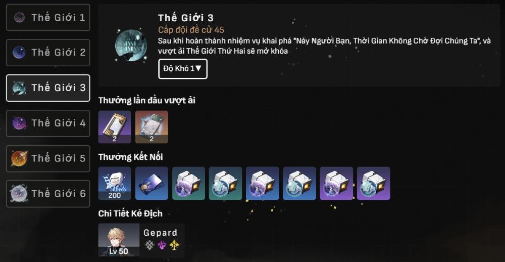 |  Thế giới 3 | Mục tiêu: Chưa có thông tin Cấp đội đề cử: 45 |