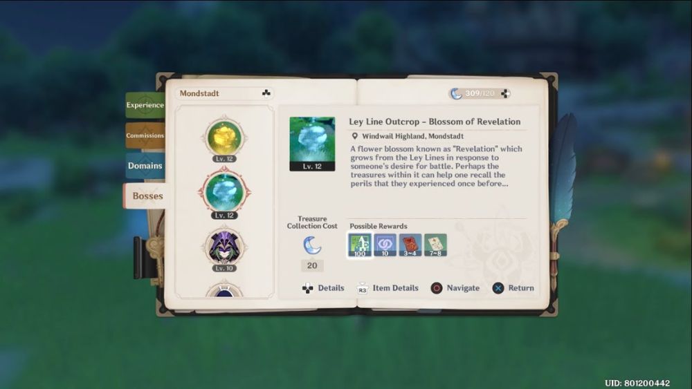 Những kẻ thù thách thức từ Ley Line Outcrops: Blossom of Revelation thưởng cho bạn Nguyên liệu EXP Nhân vật với giá 20 Resin.