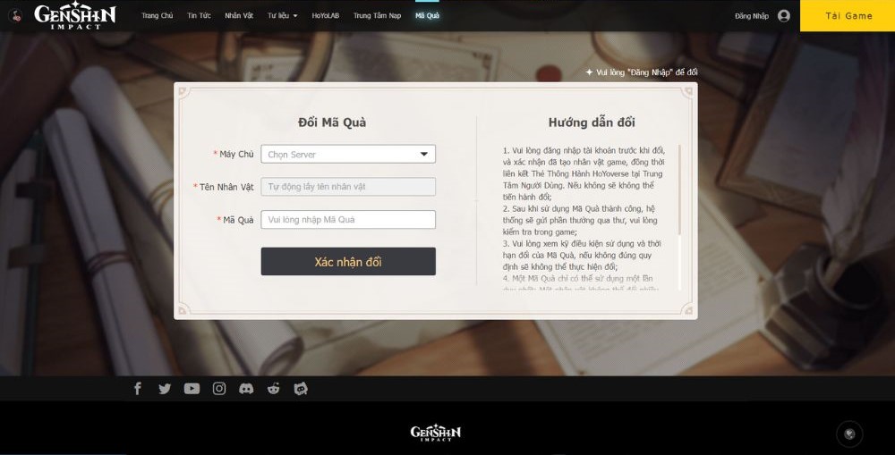 Để đổi mã Genshin Impact, bạn cần đạt ít nhất Xếp hạng Phiêu lưu mười. Tại thời điểm đó, bạn chỉ cần truy cập trang đổi quà chính thức, đăng nhập, chọn máy chủ, nhập biệt hiệu nhân vật và nhập Code Genshin Impact mà chúng tôi cung cấp. Sau đó, bạn chỉ cần nhấn đổi quà và phần thưởng là của bạn.